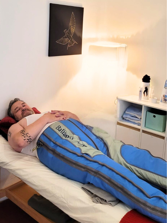 Der Ballancer arbeitet mit einer sanften, aber hochwirksamen Druckwellen-Massage, die das Lymphsystem aktiviert und den Körper entlastet.