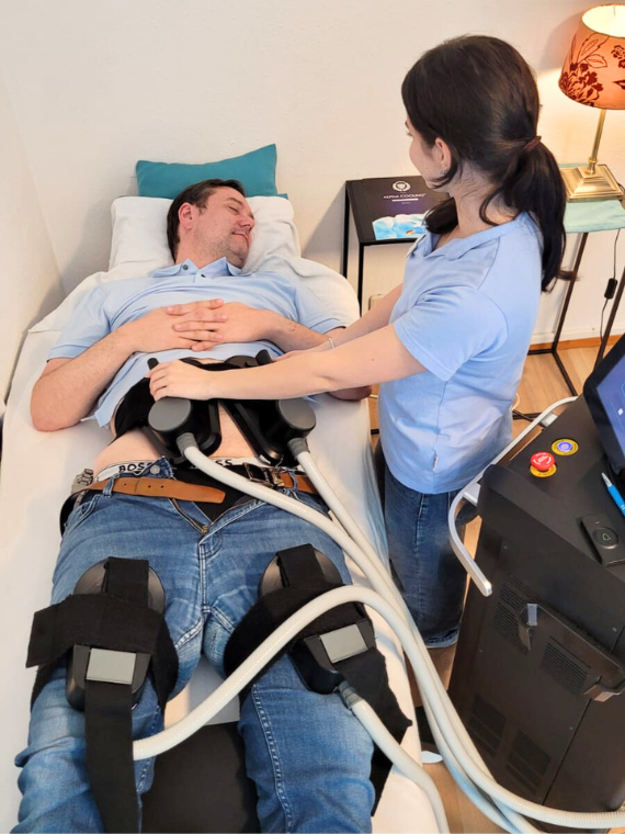 Während Du entspannt liegst, übernehmen unsere medizinischen Geräte die Arbeit: Sie helfen Dir, Fett zu verbrennen, Muskeln aufzubauen und Deinen Körper nachhaltig zu formen – ohne Stress, ohne Jo-Jo-Effekt.